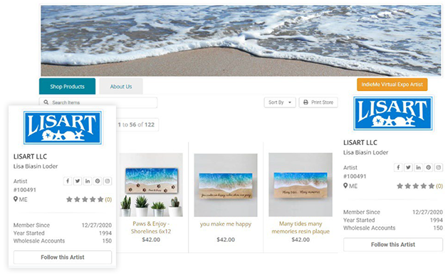 All juried artists will have a store on the IndieMe Marketplace. Artisan Food and Spa sellers will be added to our niche marketplaces at no additional cost.